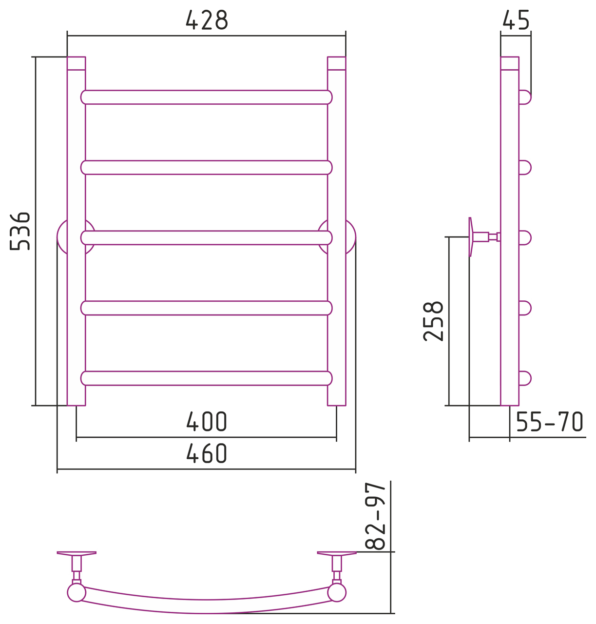 —Полотенцесушитель водяной Стилье УНИВЕРСАЛ-50 600*400 (5) Г 21