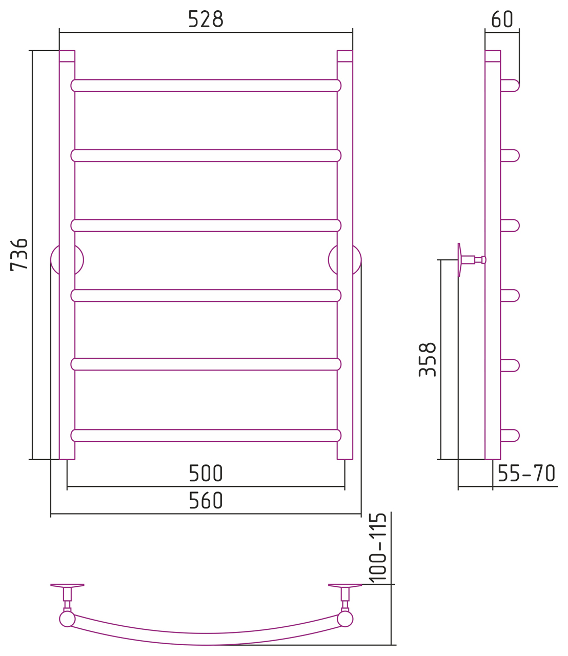 —Полотенцесушитель водяной Стилье УНИВЕРСАЛ-50 800х500 (6) Г 21