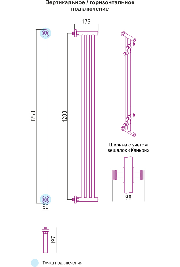 —Полотенцесушитель водяной Сунержа ХОРДА 1200х195