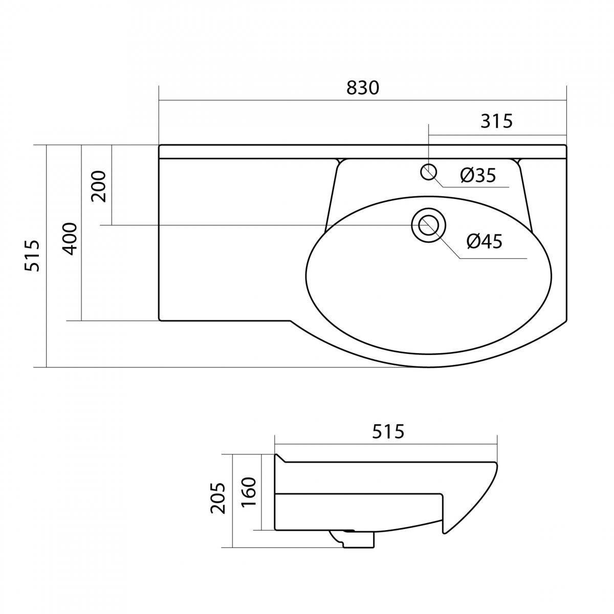—Раковина Santek КОРАЛЛ 82 см. лев.