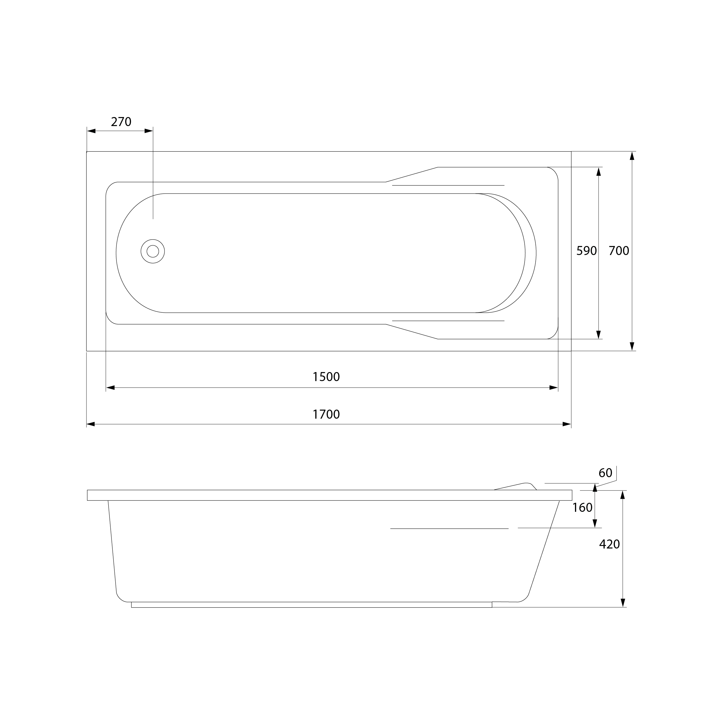Ванна акриловая Cersanit SANTANA 63324 160x70 см.